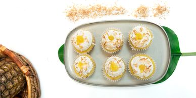 Pineapple cake soaked in rum sauce. Filled with a rum infused butter cream & pineapple chunks.